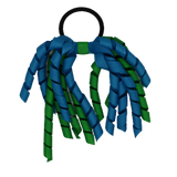 Our Short Curly Ponytail Streamer Hair Tie School Uniform Hair Accessories is made from Grosgrain Ribbon and attached to a hair tie (Pony O), The streamers are approx 10cm long using 16 streamers. Also know has Short Korker Hair Ties.